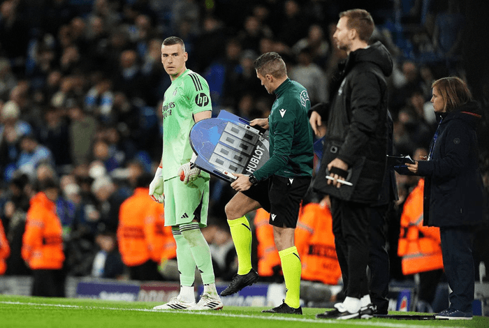 Real Madrid were forced to make a surprise change in goal, as Thibaut Courtois suffered an injury and was unable to continue the match.